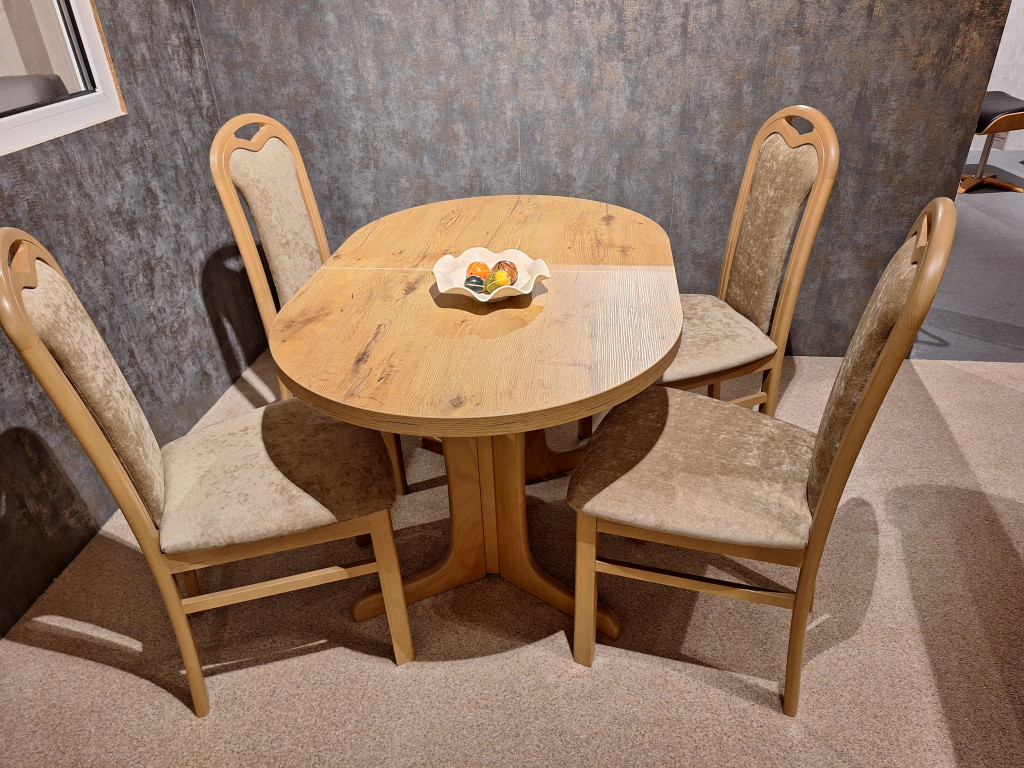 1 Esstisch oval, Platte Wildeichedekor, Gestell Buche massiv wildeichefarbig gebeizt,